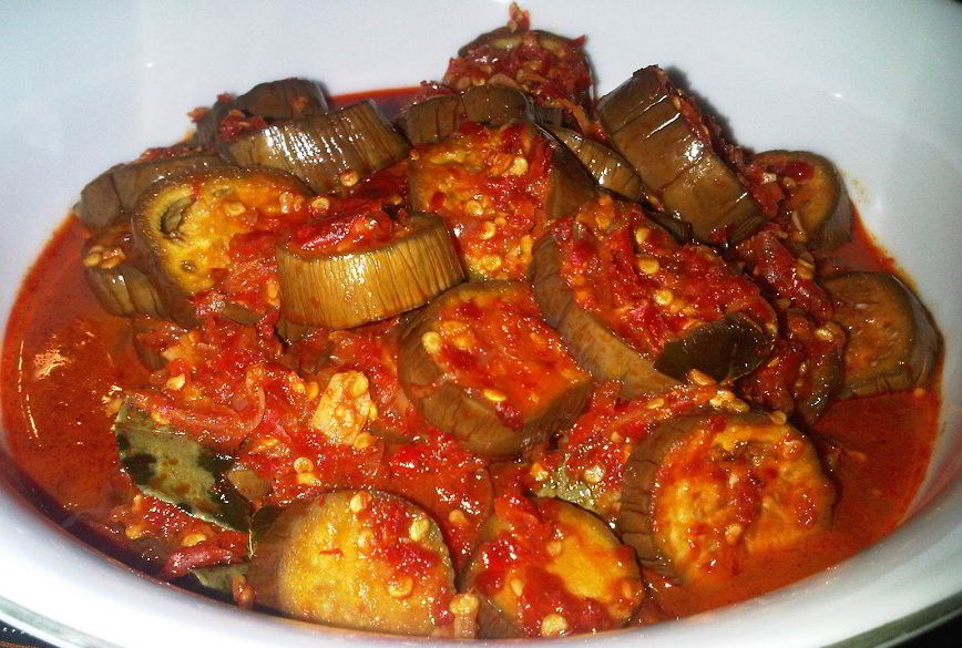 2-3 porsi 3 siung bawang putih 3 siung bawang merah 1 buah terong (dipotong-potong) 5 buah Cabe merah keriting 1/4 buah gula jawa 1 buah sere 1 buah daun jeruk