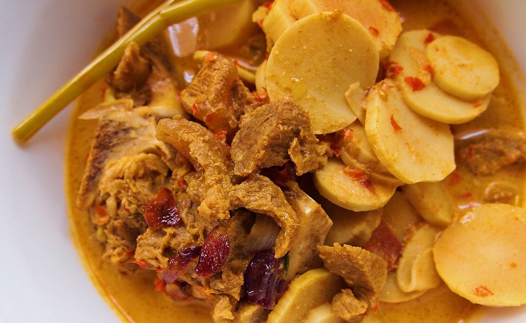 Tulang lembu bahagian rusuk secukupnya direbus sehingga empuk Rebung – direbus lebut dan dipotong nipis 1 bungkus kecil rempah daging 1 1/2 senduk cili kering kisar 4 mangkuk santan pekat 1 Daun kari 3 batang serai – diketuk Sedikit minyak untuk tumis darat 1/2 cawan air asam jawa – yang cair je ta pekat