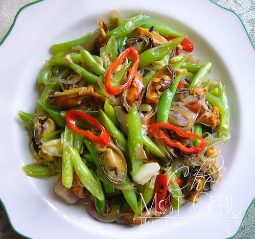 Kacang buncis secukupnya (dalam 25 tangkai macam tu) 1 genggam isi kupang, dibersihkan 1 biji bawang besar, hiris 3 ulas bawang putih, diketuk 1 biji cili merah, hiris 1/2 camca besar sos tiram Sedikit soo hoon, kerat pendek dan rendam Sedikit air Garam secukup rasa