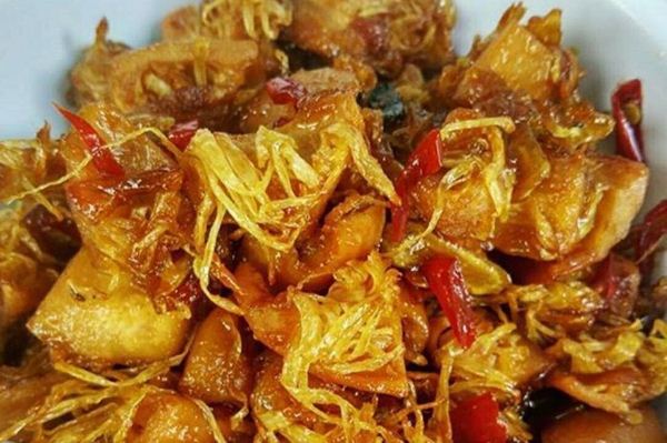 Cabai goreng udan: Dengan 3 sendok makan minyak goreng, tumis dahulu irisan : 10 buah cabai merah yang bijinya sudah di buang, 5 buah bawang merah, 2 buah bawang putih, 1 cm lengkuas yang di memarkan, 2 lembar daun salam, tumis hingga harum dan layu. Kemudian masukkan 250 gram udang kupas, di aduk-aduk hingga rata. Tambahkan ½ sendok teh garam, masak hingga matang merata, lalu di angkat untuk siap di hidangkan.