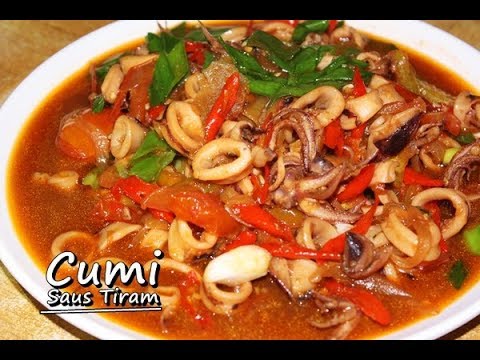 500 gram cumi segar ukuran sedang, potong bentuk dadu , 1 siung bawang bombay, iris 4 siung bawang putih, rajang halus 1 buah jeruk nipis, peras ambil airnya 1 batang daun bawang, potong 3 sendok makan saus tiram instan 1 sendok makan saus sambal 1 sendok makan saus tomat 1 sendok makan mentega 1 sendok makan maizena, larutkan dengan air Merica bubuk secukupnya , Garam secukupnya, Air secukupnya